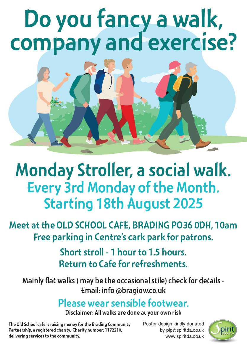 Going for a walk in Brading on a Monday or Thursday between 10am – 1pm and fancy some reasonably priced refreshments?…then why not call in at the OLD SCHOOL CAFE, HIGH STREET, BRADING. PO36 ODH… free parking for patrons. Dog friendly, cyclist and walkers welcome. Bacon Baps are a favourite!!..or the toasted teacakes, home made cakes etc.