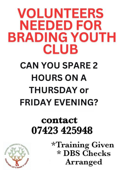 The Brading Youth & Community Centre is run by Brading Community Partnership, a registered charity, providing services to the community from the Youth to the older generation. The centre depends greatly on volunteers giving their time willingly and make this centre a success….If you would like to volunteer, please get in touch. The café would love to have more helpers.